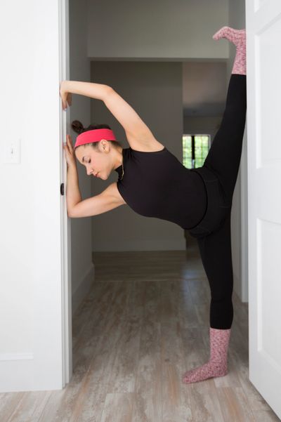 When I was training intensively for dance I would stretch in a doorway, utilizing both sides of the doorframe everyday. I would also use the underbelly of the couch to achieve new limits of stretching from a different angle. I would squeeze myself into different shapes in various locations, allowing myself to be creative with where and how I stretched.